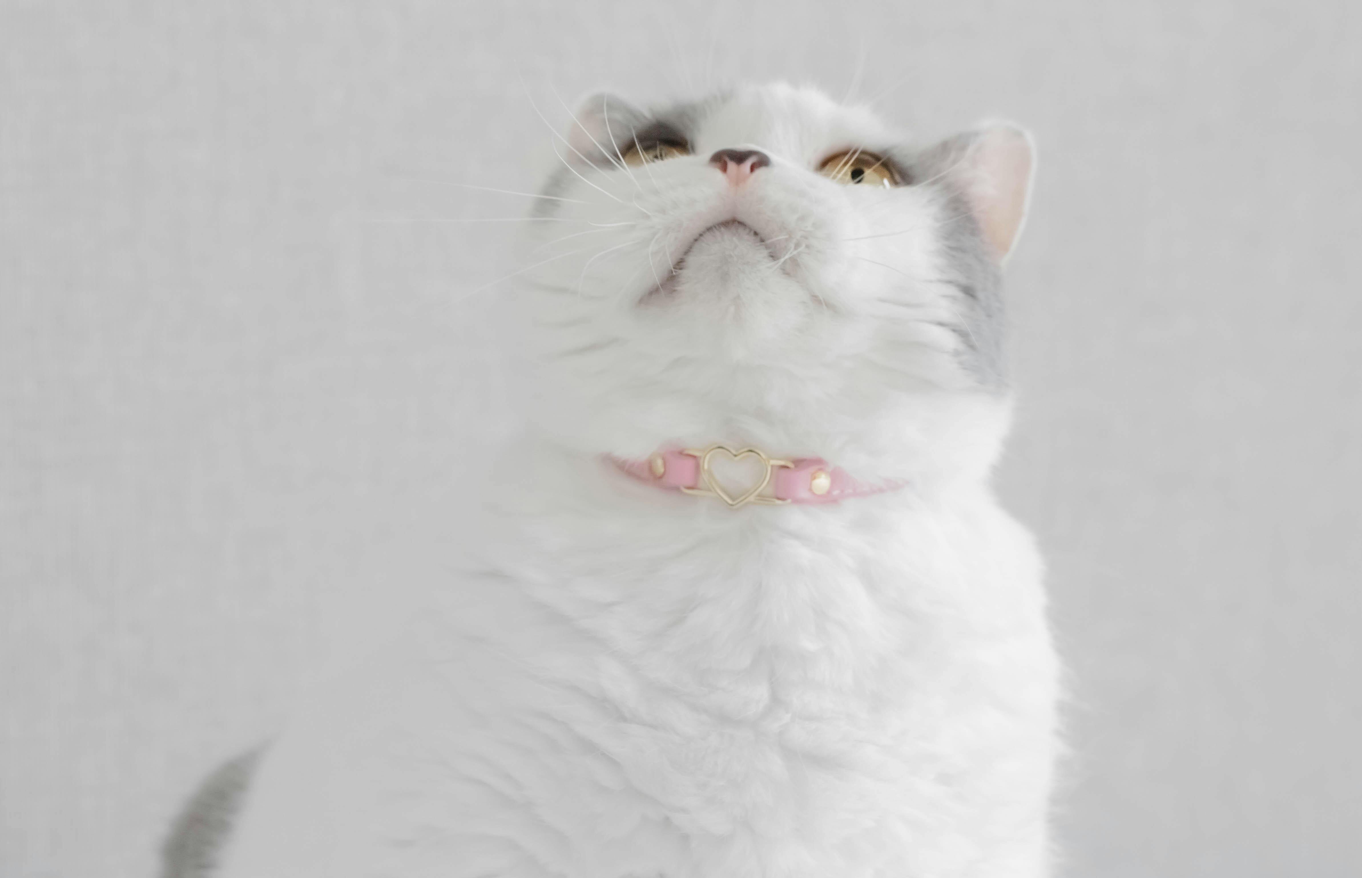 Elevate your kitty's look with this stylish cat collar. Made with vegan leather and our signature heart hardware, this collar is an adorable accessory that will also keep your cat safe with a breakaway buckle and bell. Purrfect!
